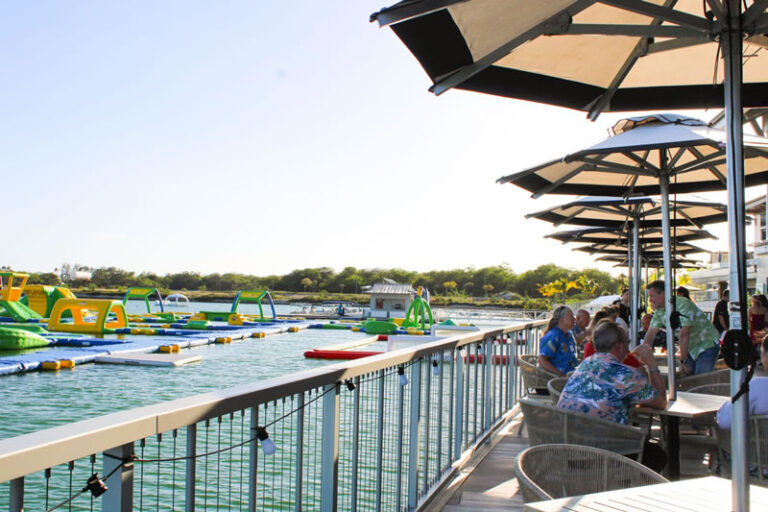 ウォータースポーツを楽しんだ後は、ラグーンと海を眺めることができるレストランやカフェバー、ショッピング施設でくつろいでお過ごしいただけます。